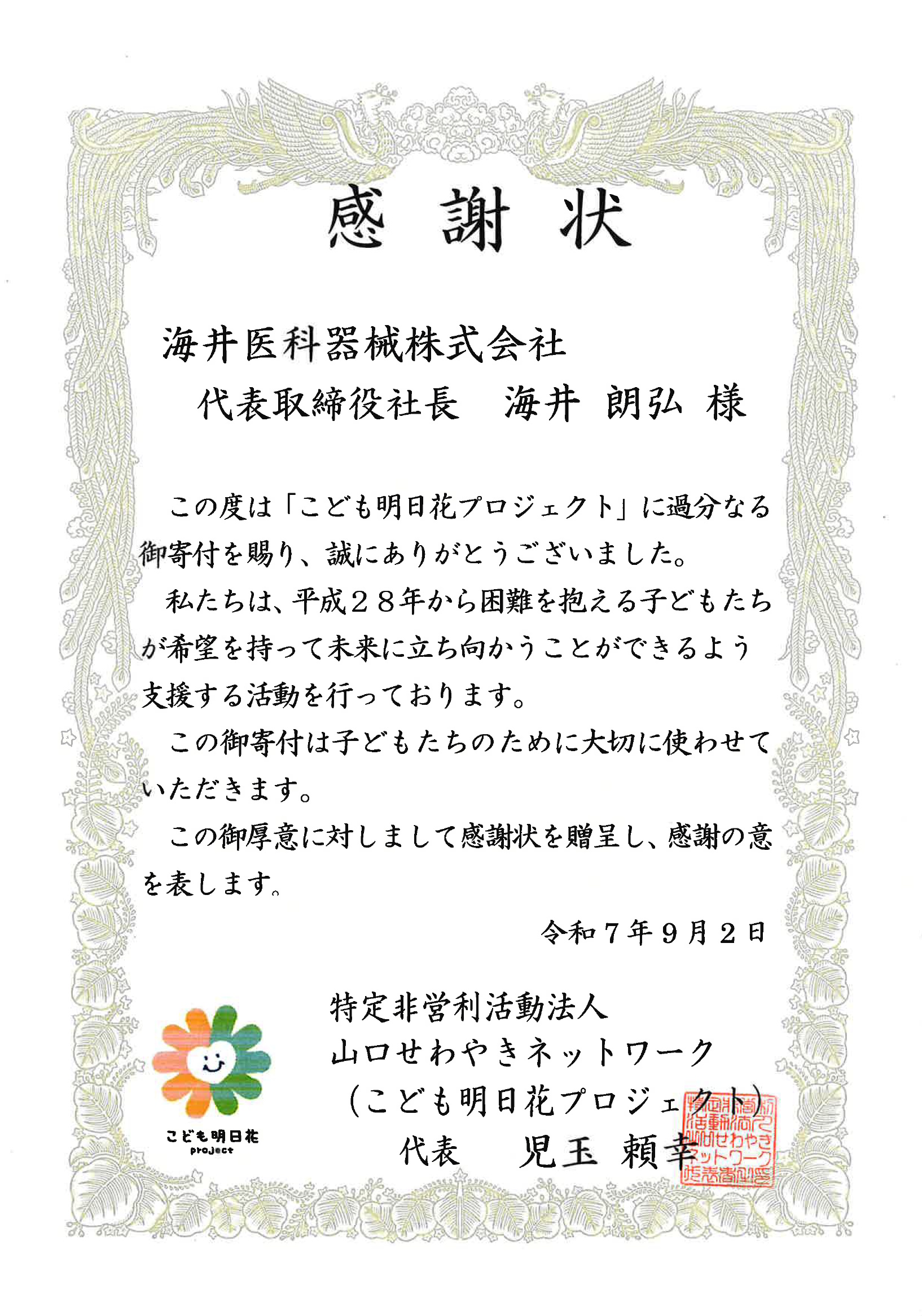 感謝状